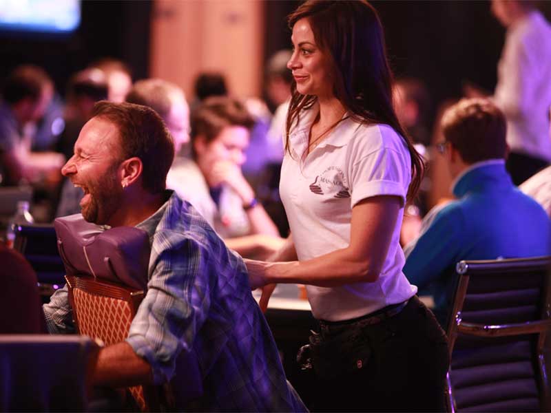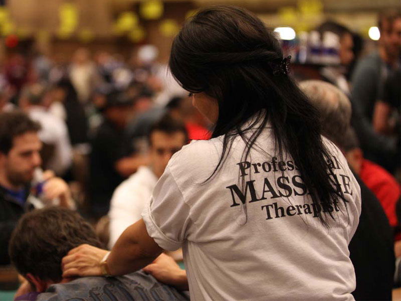 The 59-year-old runs the army of massage therapists that keep thousands of poker players each year at ease during the intense, eight-week tournament..